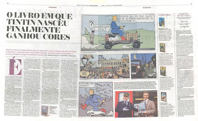 E no seu suplemento Mais Artes, o tema teve direito a duas páginas, com um interessante texto escrito em Bruxelas por João Francisco Guerreiro. Com a devida vénia a este jornalista, aparentemente tintinófilo, retirar-lhe-ei do artigo alguns excertos. Ei-los: