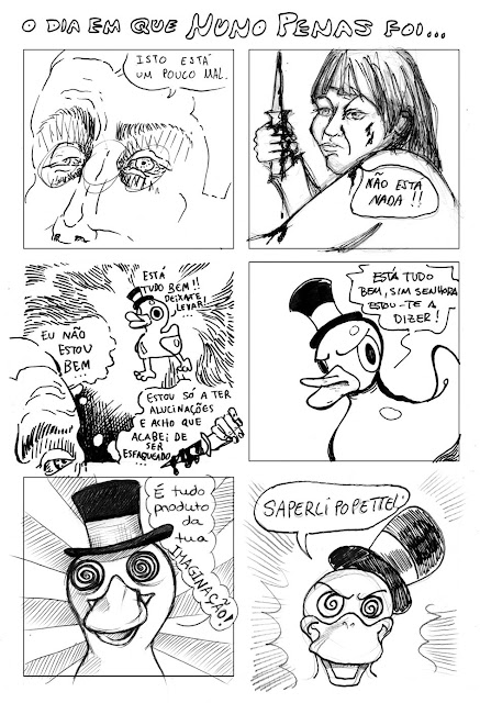 O Dia Em Que... Nuno Penas foi o autor Convidado Especial da Tertúlia BD de Lisboa, no encontro de Abril, e teve a incumbência de desenhar a vinheta inicial do "cadáver esquisito" ou comic jam, com mais cinco cúmplices, cujos nomes ficam registados para a posteridade. Vejam-nos aqui por baixo:
